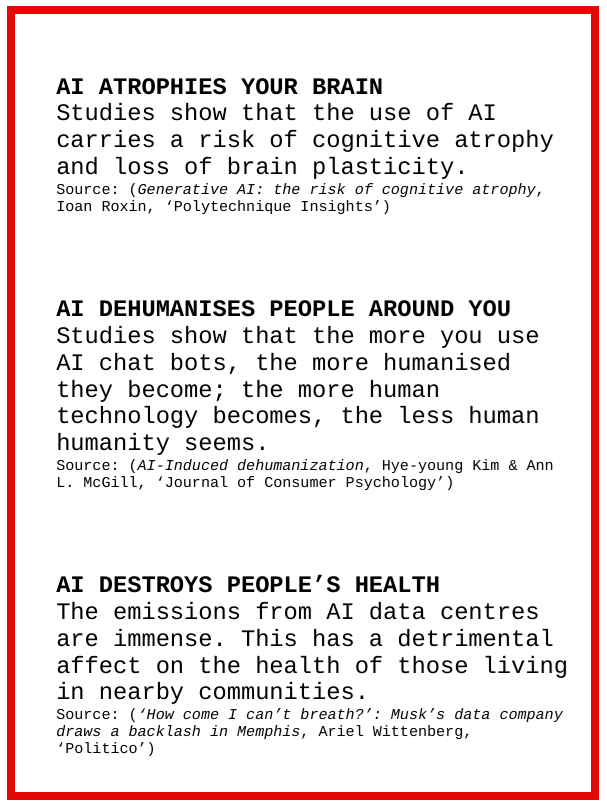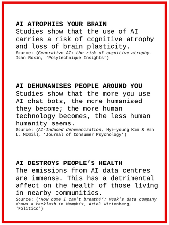 The use of AI in the creation of IC material, OOC marketing content, LARP merchandise, and in hype groups by players (for example, generating character images) is a red line for many prospective players. This document hopes to break down why people are so concerned.